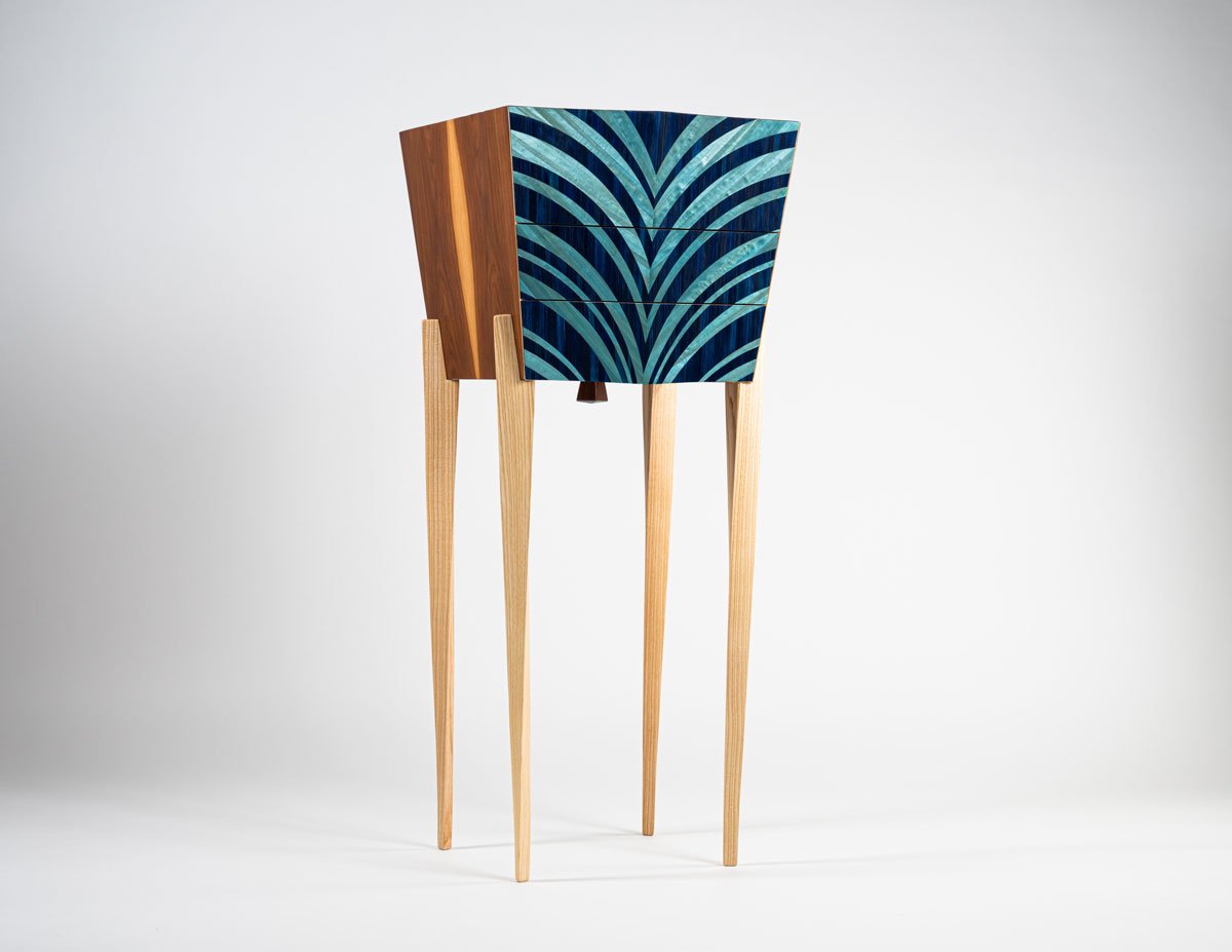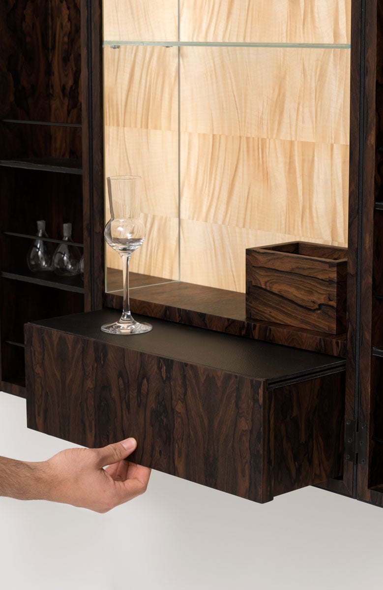 American cherry provides high-quality veneer wood that darkens more than European cherry. Tangentially, it shows fine veining, radially attractive stripes, with the fine medullary rays appearing as bright, shiny flakes. This wood is preferred when furniture and interior fittings are to impress with balanced and elegant looks. The simple, elegant and balanced appearance of cherry wood lends the interior a timeless aesthetic.