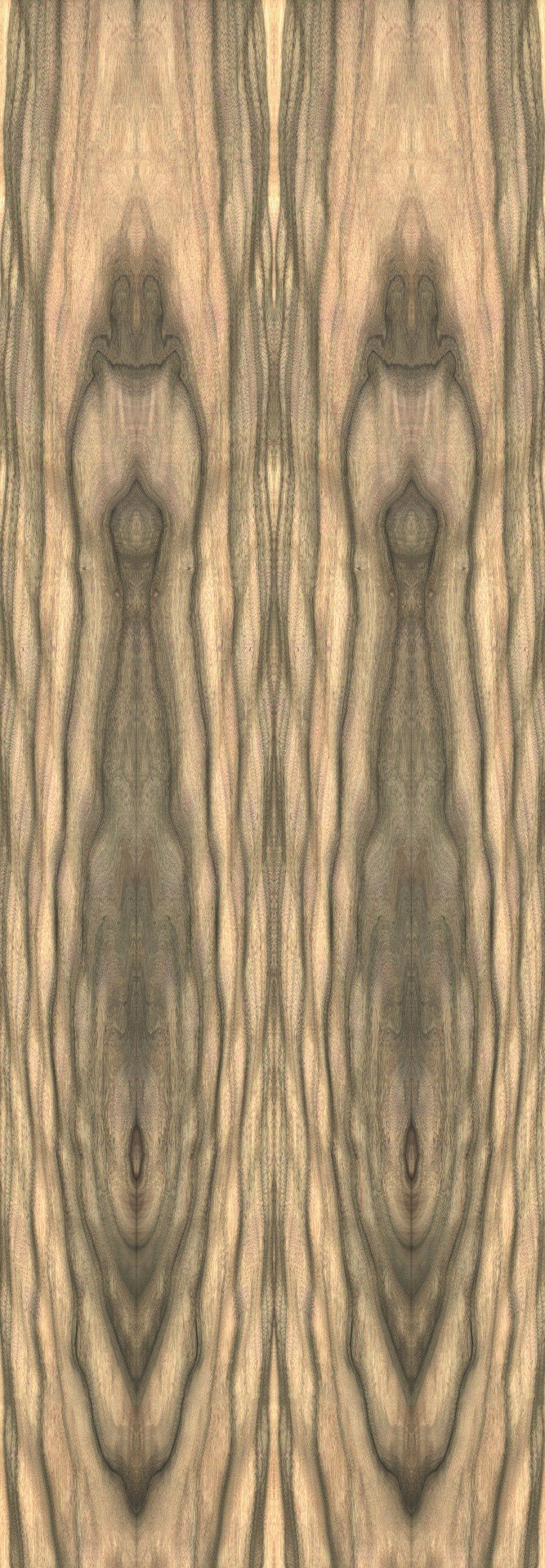 This decorative, light brown-red log fascinates with its dark, wavy image. The joined veneer appears almost three-dimensional. The log is available as a rift veneer with wavy or straight lines.