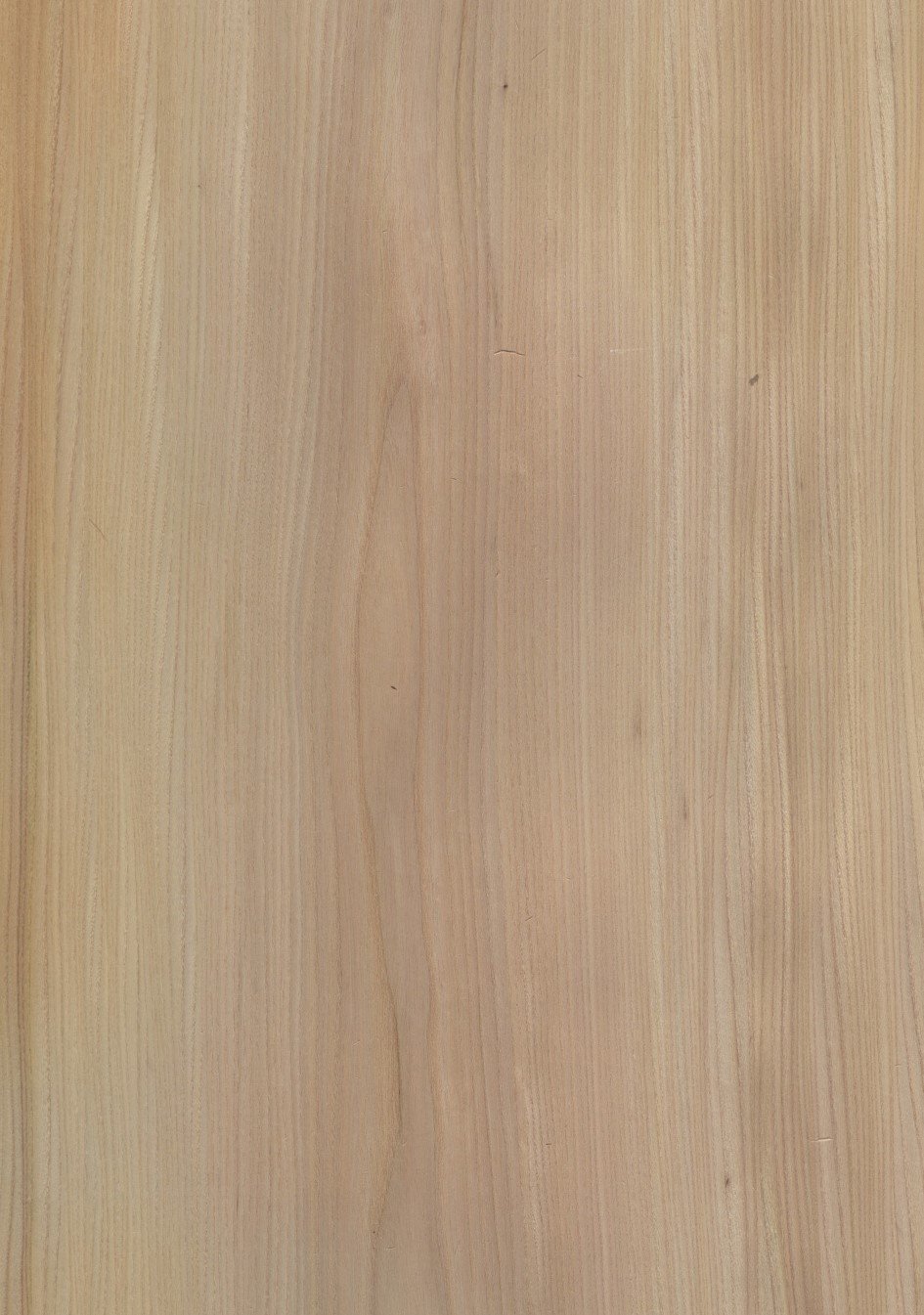 Structurally, the red elm has the same decorative vivacity as the European elm. The pores produce clear annual rings, which, in turn, lead to the expressive jagged grain or stripes on the longitudinal surfaces. The pink or reddish brown coloring of the red elm is complemented by lovely light effects caused by the short grain of the wood rays.