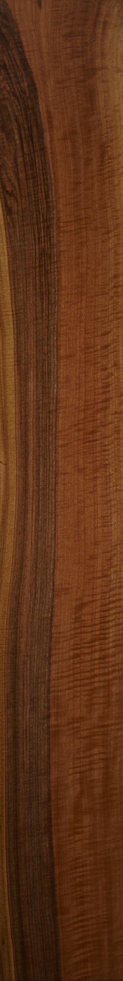 This exceptional veneer captivates with its harmonious interplay of heartwood and sapwood. The striking contrast is further enhanced by the natural figuring, creating a stunning visual effect. Warm golden and brown tones give it an elegant, almost flame-like appearance, turning any surface into a unique masterpiece.