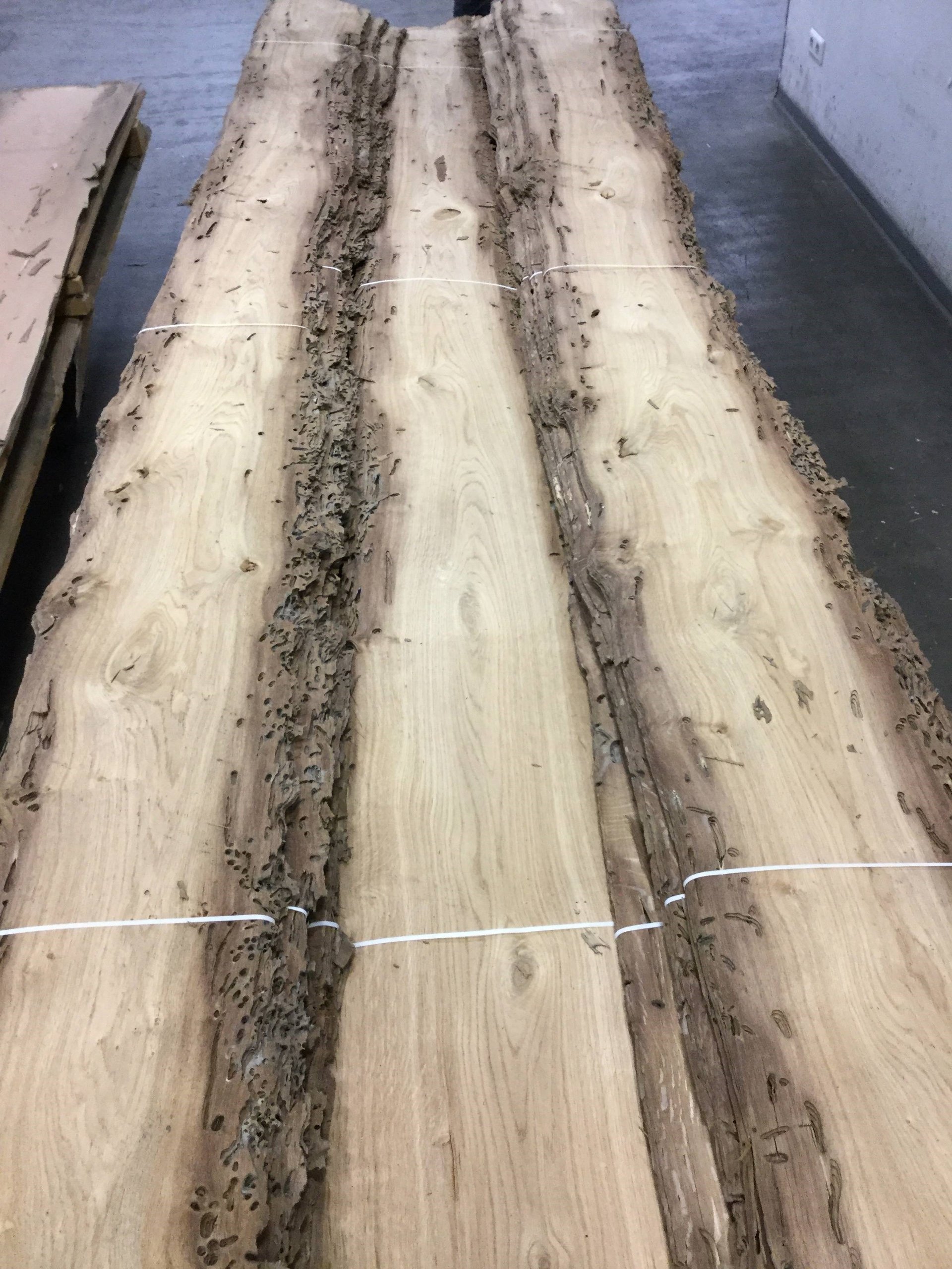 The long oak poles, which are characterized by the tides in the lagoons of Venice, are called briccola. The Venetian Oaks are up to 18m long and remain in the sea water and sea bed for 10 to 20 years and are exposed to the shells and shipworms. The wood is covered from the inside with round holes, which create very striking drawings and shapes in the wood. The “briccola” thus acquire the colour of antique oak in more or less intense tones, depending on how long they have been under water in the lagoon.