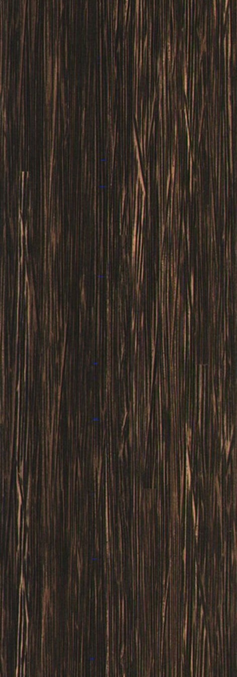 The outside part of the black palm is hard and heavy with a dense fibre structure and has many of the characteristics of hardwood. The character is a random series of black, dark brown and lighter, cookie-coloured, narrow stripes or lines that often interlock. The thickness is usually 1.0 mm, as the quality suffers when the slices are cut thinner. Black Palm Veneer is made similar to bamboo, i.e. small stripes are joined together in length and width. It is a relatively expensive veneer and is mainly used for special furniture and interiors.