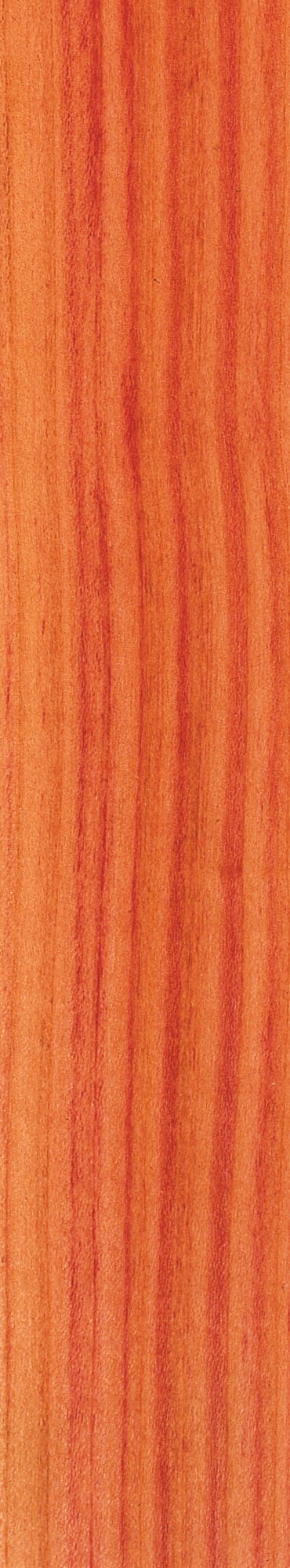 The core of the plum is a vivid reddish brown wood shot through with violet veins. This clear streak of violet makes the wood decorative and elegant. Thanks to its hardness and fine, uniform structure, plum wood has a beautifully smooth and shiny surface. The narrow portion of sapwood in a yellow to light red tone clearly stands out from the heartwood. Lacquer with ultraviolet protection is required to maintain the lovely coloring over time. Unfortunately, the small dimensions available mean that only limited surface areas can be provided with this veneer.