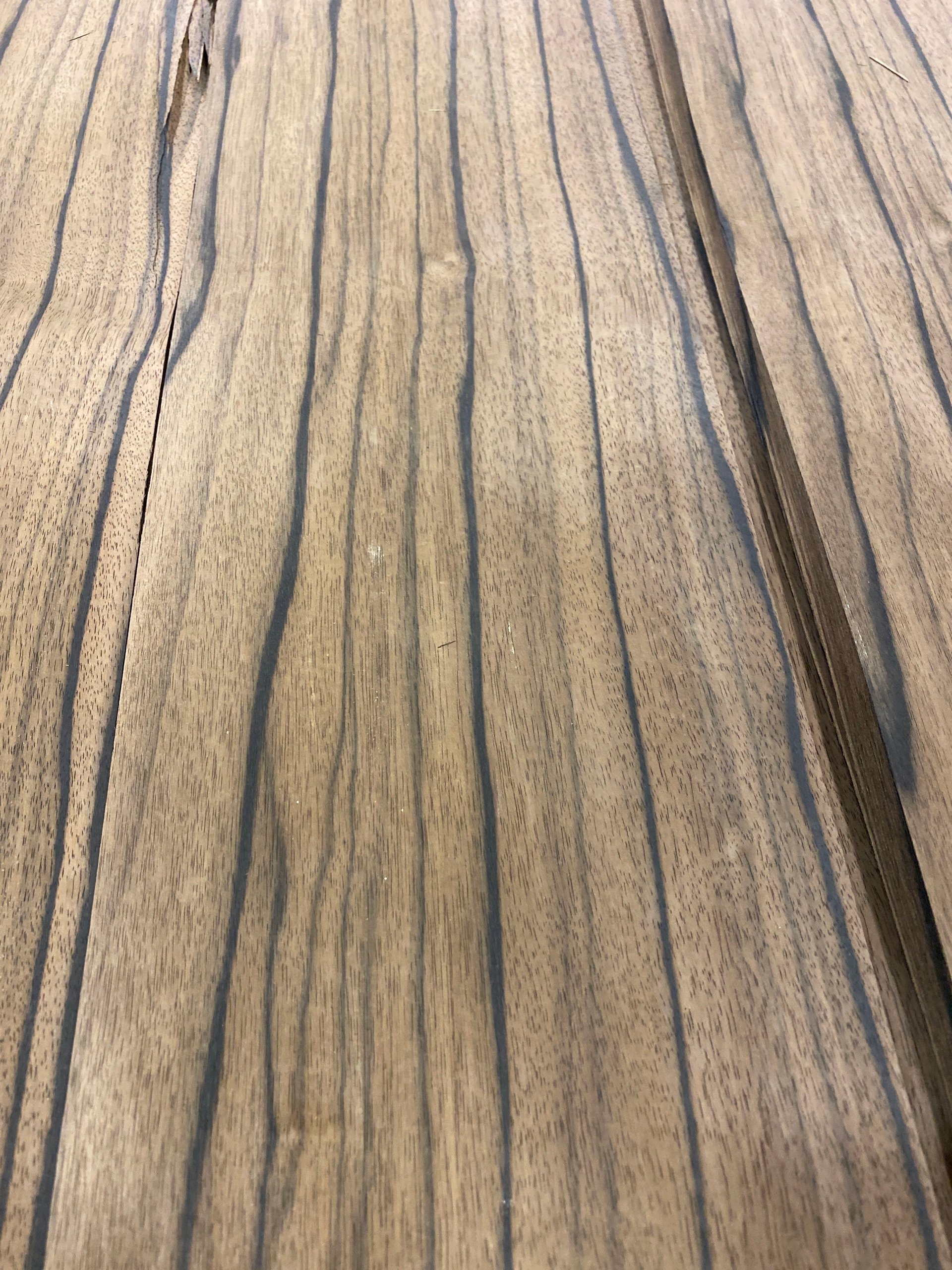 The very hard Makassar belongs to the colored ebony woods. Its elegant dark veneer pattern has a grey-brown to red-brown ground colour with dark brown to black stripes. The smooth and strikingly glossy surfaces are thus given a pronounced stripy structure. Dark mineral constituents are occasionally visible on the side surfaces in the pore grooves. Smoked Macassar is Macassar wood modified in colour. During smoking, the wood is fumigated with ammonia or ammonia solution (ammonia water). This discolours the wood and gives it a brown to dark brown colour.