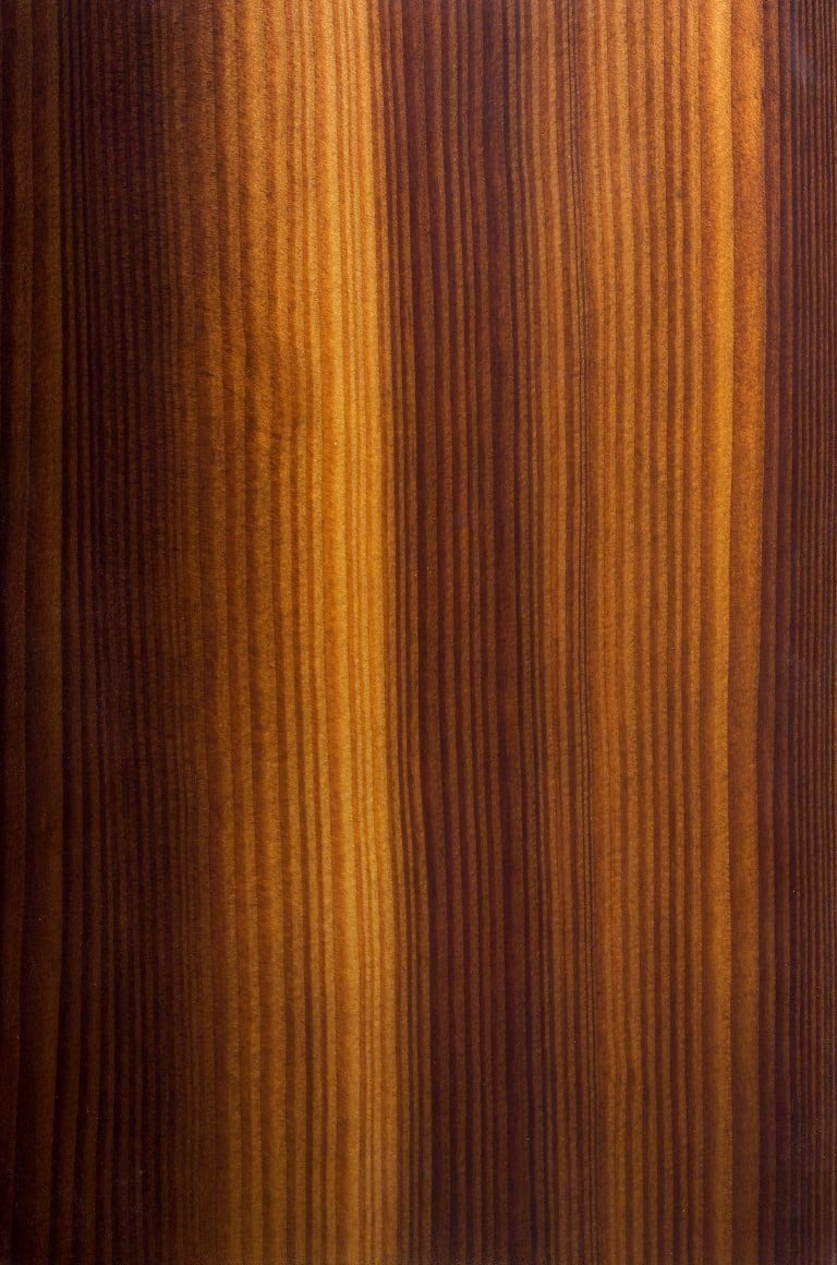 The appearance of this popular trim wood is determined by the striking alternation of early growth and dark late growth, which is sharply outlined on both sides. On the tangential plane, strikingly beautiful figures result, while the radial surface reveals strong and solid stripes with a decorative effect. The pale reddish and yellowish brown to intense brick red color and the numerous, scattered black pencil-thin knots give the wood a warm, country look.