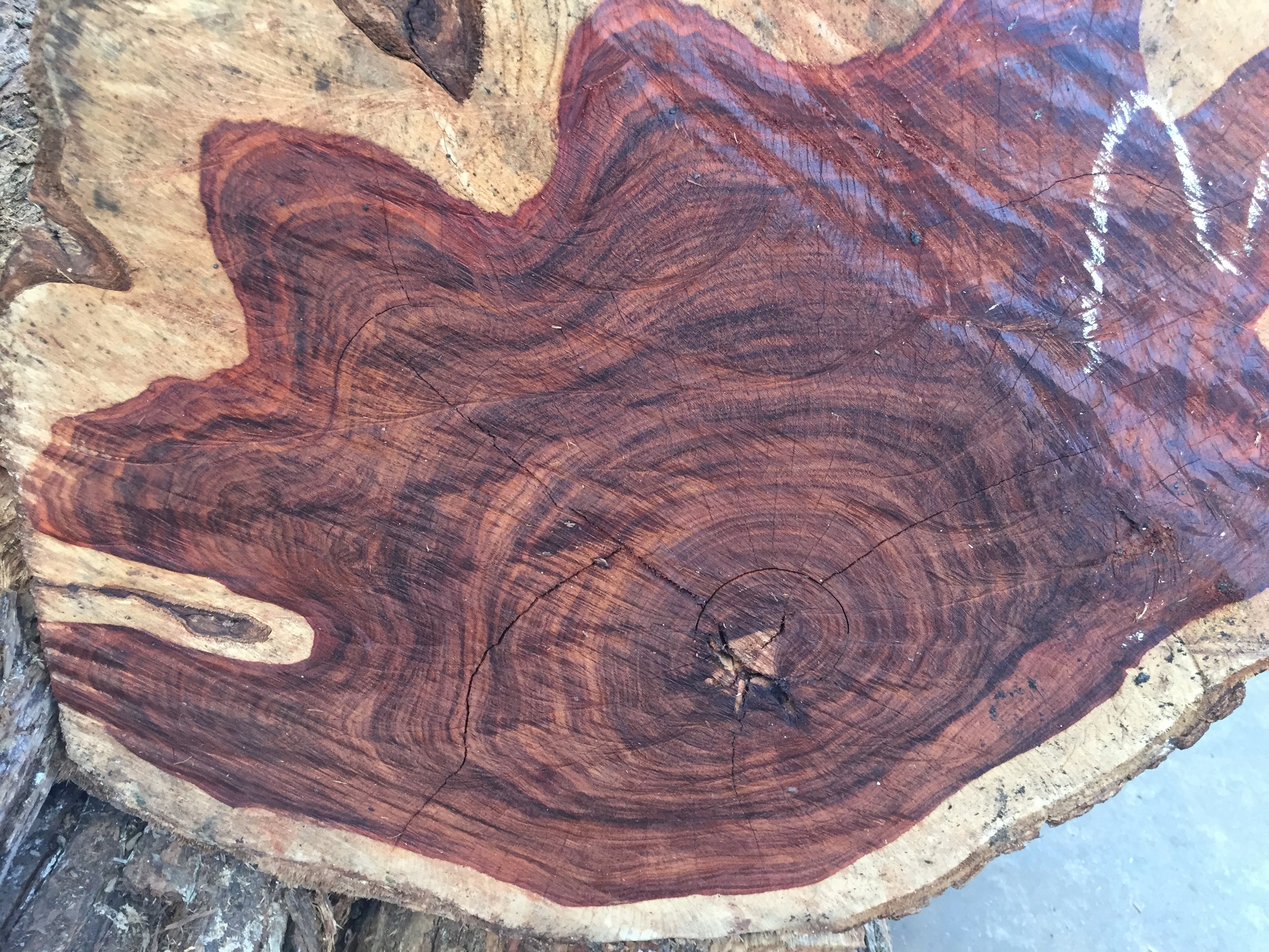 Die Bäume werden bis zu 20-30m hoch und können einen Durchmesser von bis zu 1,5m aufweisen. Das Holzbild ist unterschiedlich, im allgemeinen dekorativ bis sehr dekorativ. Das Holz besitzt eine goldgelbe bis hellbraune Grundfarbe und ist mit dunklen, schwarzbraunen bis schwarzen Adern gestreift. Die Poren sind mittelgroß bis groß. Das dichte Holz ist durch den hohen Ölanteil gut polierbar und riecht angenehm.