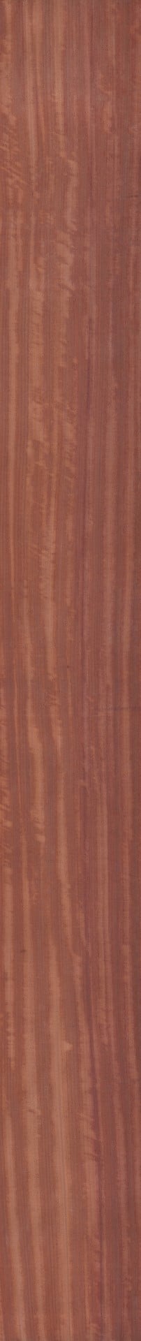 Eines der interessantesten Edelhölzer der Welt ist das afrikanische Padouk, welches im frischen Zustand eine leuchtend korallenrote Farbe aufweist. Mit zunehmender Trocknung variiert diese Färbung zu einem samtenen purpurroten bis orange-rötlichbraunen Farbton. Der meistens vorhandene Wechseldrehwuchs führt zu wunderschönen Glanzstreifen und unterstreicht damit den edlen Charakter dieses Holzes. Eine manchmal auftretende unregelmäßige und dunkle Farbstreifung belebt das Furnierbild. Wichtig ist eine Oberflächenbehandlung mit Lichtschutzpigmenten, um ein Verblassen der wunderschönen Farbe zu verhindern.