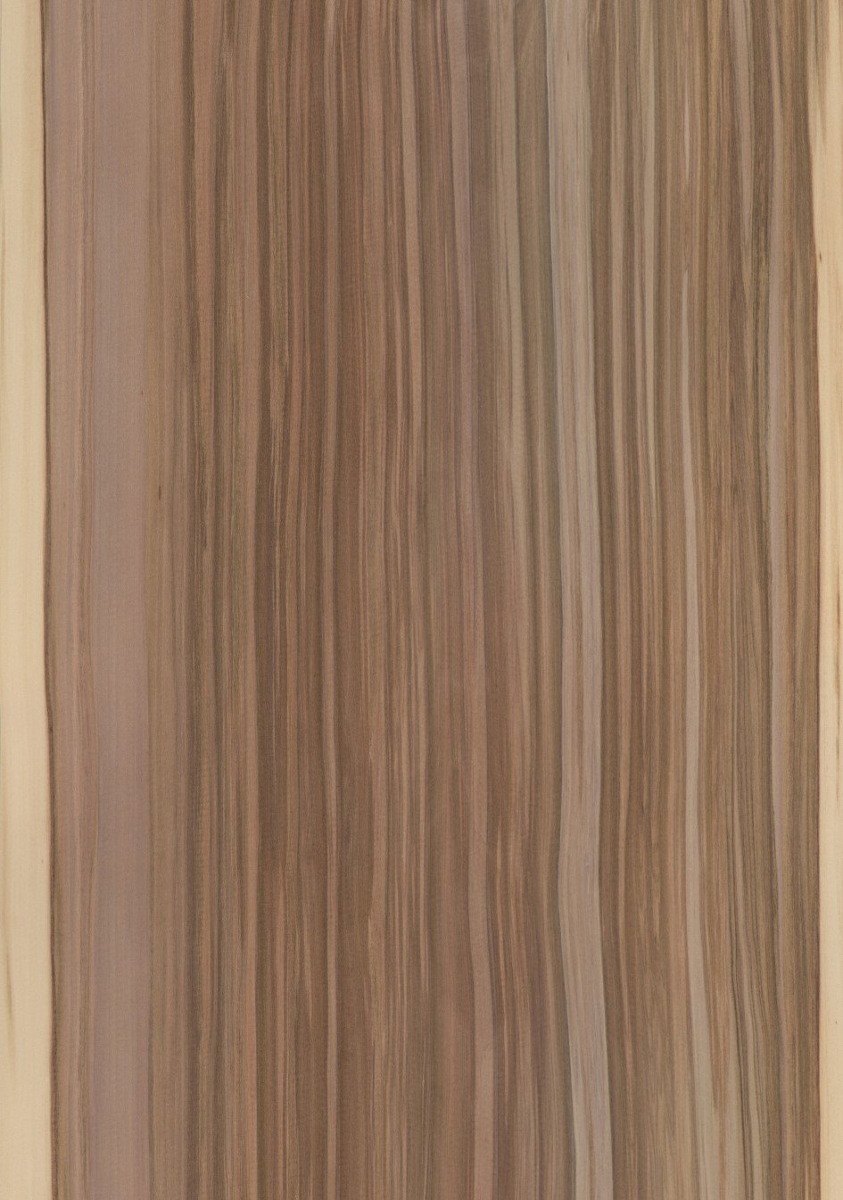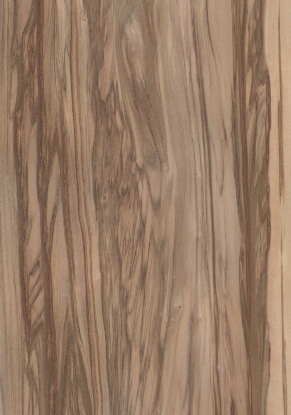 Das dezent nach Vanille duftende Holz zeichnet sich durch einen unregelmäßigen Faserverlauf, eine feine, gleichmäßige Textur und einen seidigen Glanz aus. Auf den Tangentialflächen des dem Nussbaum ähnlichen Holzes zeigen sich zarte aber dennoch gediegene Fladerungen und auf den Radialflächen ebensolche Streifen. Bisweilen finden sich auch geflammte Dekore. Das rahmweiße Splintholz mit rötlichem Einschlag und das glänzend rosé- bis rötlichbraungraue Kernholz werden getrennt verarbeitet.